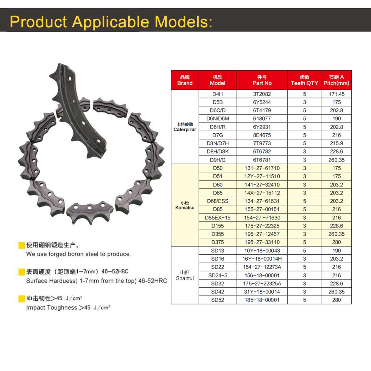 標簽: CAT D8N 推土機段鏈輪;山推推土機齒塊;齒塊;客戶;OEM或定制;材料,5齒推土機齒塊,中國,制造商,工廠,低價,中國制造,耐磨件切削刃,小松挖掘機齒塊,挖掘機鏟邊緣